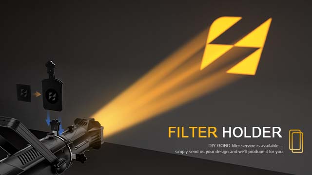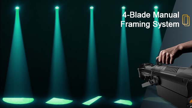 Designed for versatility, the unit features a manual 4-blade framing system to shape light spots, plus a filter holder for gobos, frost, or color filters.