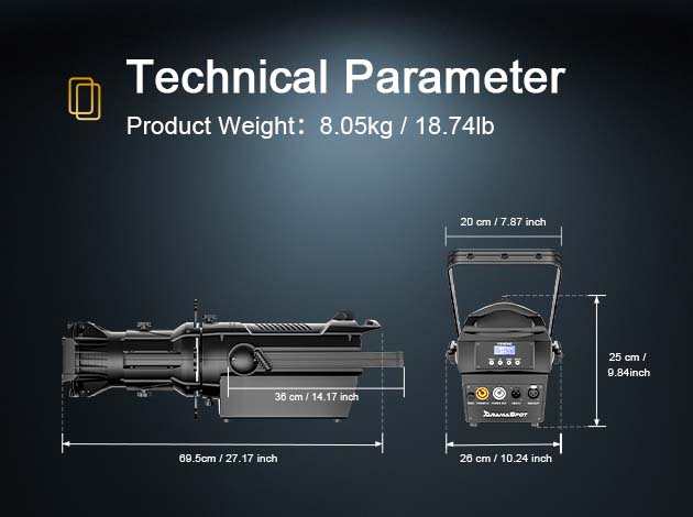 This ellipsoidal is ideal for theaters, studios, concerts, and stage productions,