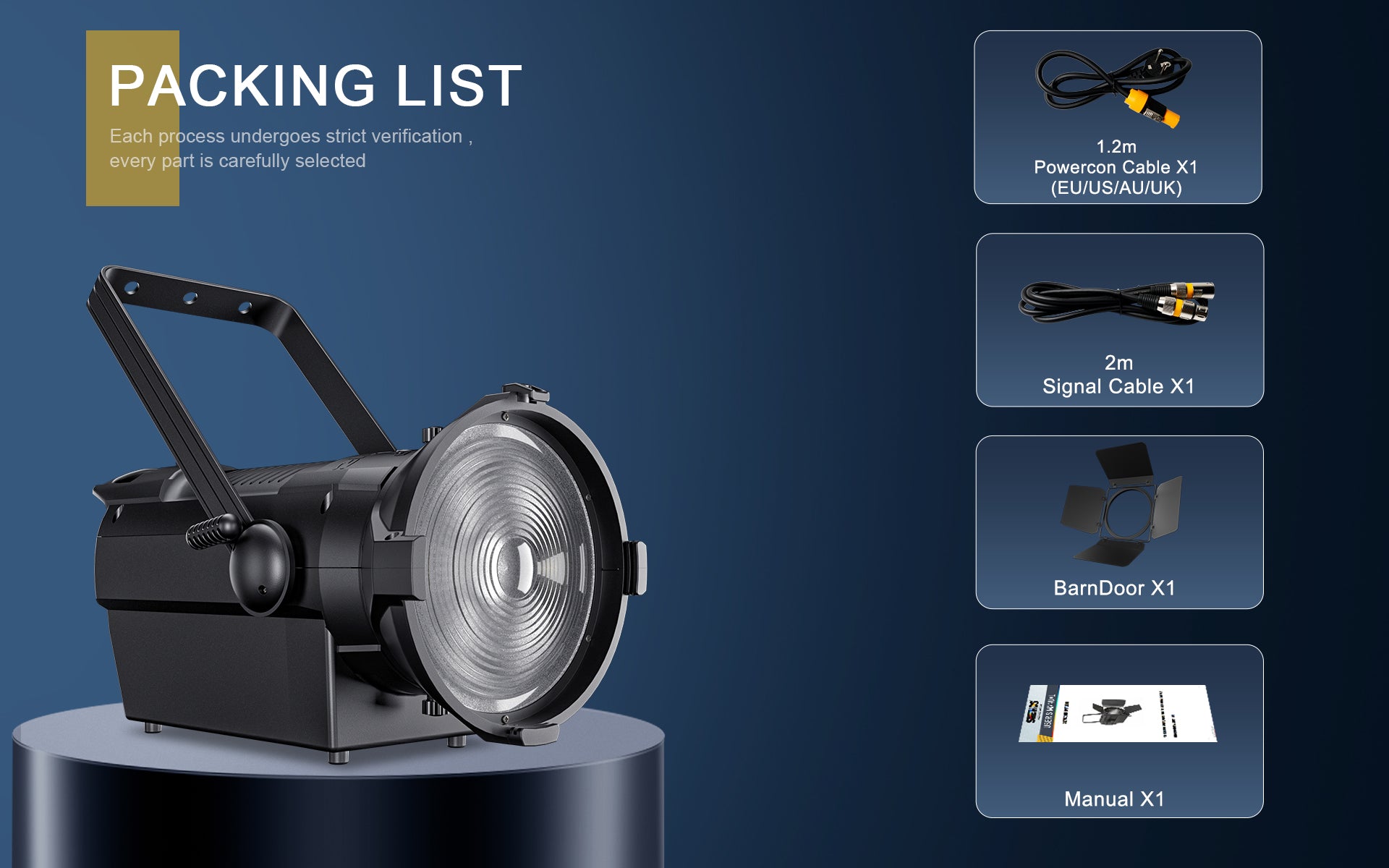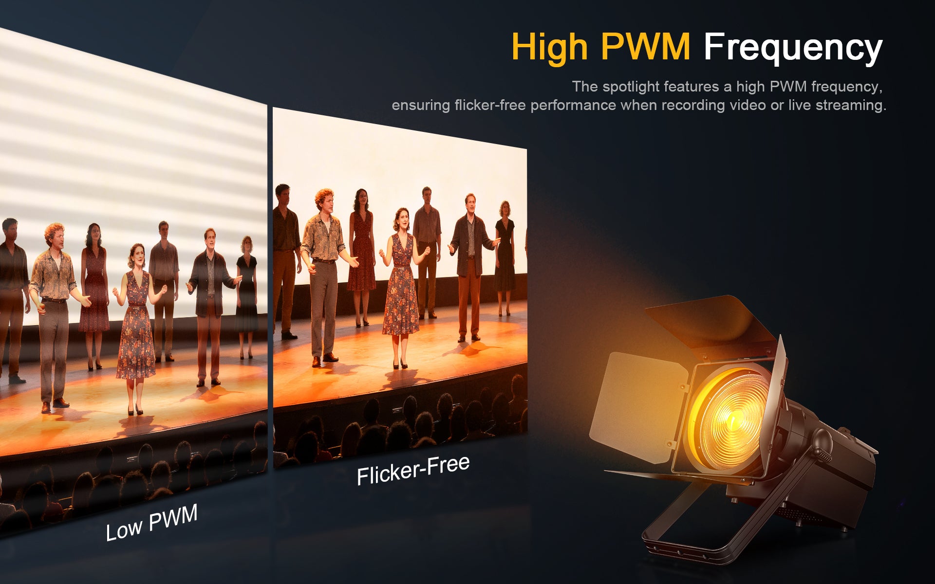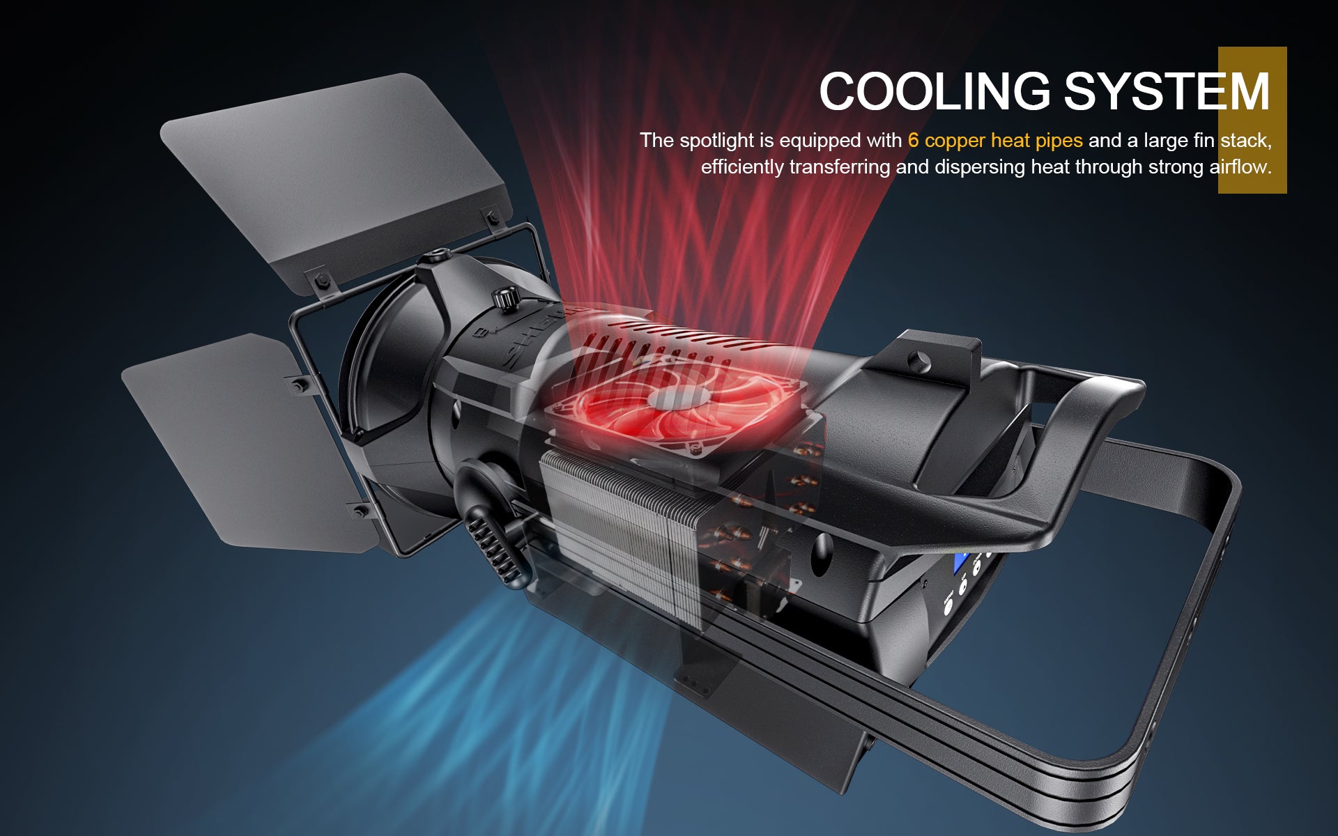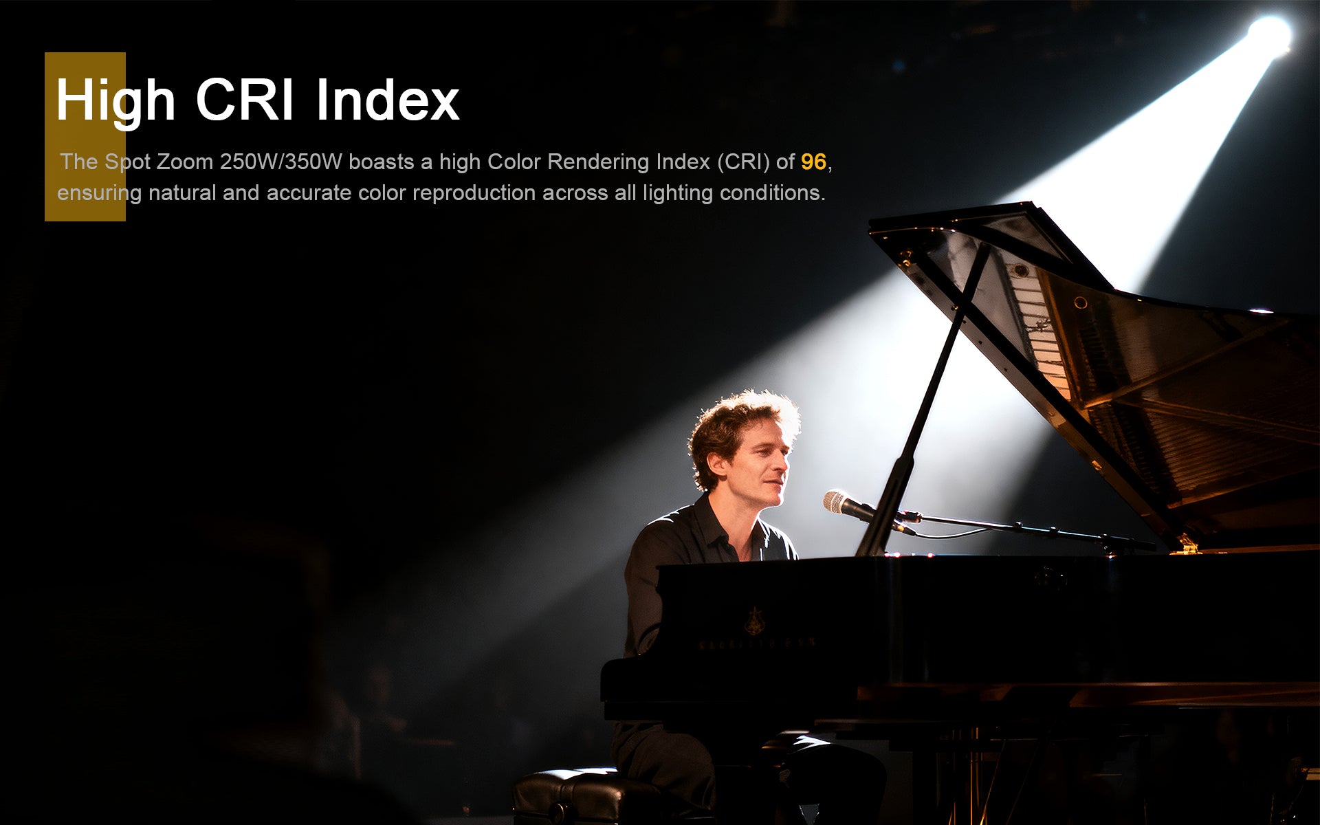 The Spot Zoom250W/350W features a smooth 16-bit dimmer, providing precise and flicker-free brightness control from 0–100%.