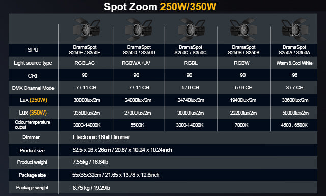 The new Spot Zoom250W/350W Fresnel Zoom Spotlight delivers exceptional performance with cutting-edge color technology.