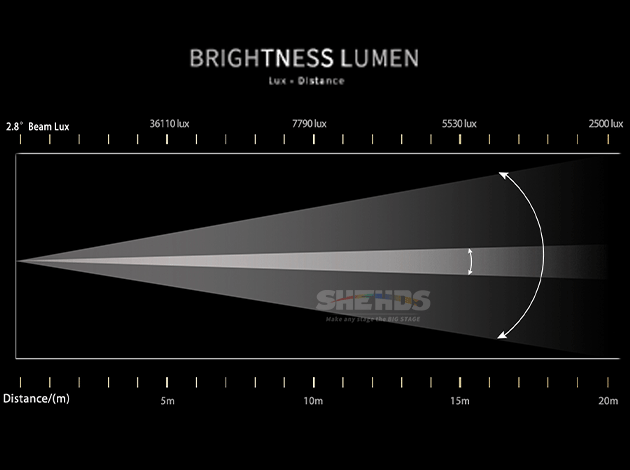 and in beam mode, the illumination at 10 meters reaches 7790 lux, with a sharp sense.