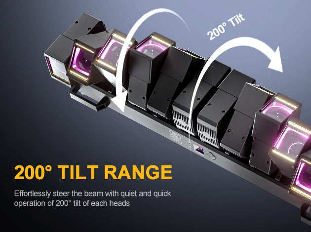 Effortlessly steer the beam with quiet and quick operation of 200° of tilt of each heads