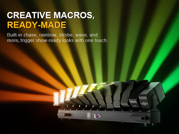 Built-in chase, rainbow, strobe, wave, and more—trigger show-ready looks with one touch.