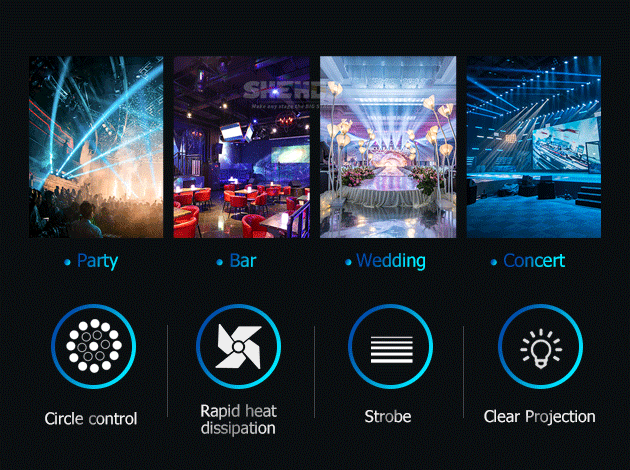 Circle control /Rapid heat dissipation/Strobe /Clear Projection