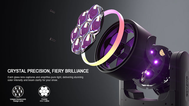From vivid beams to immersive color wash — one fixture, endless expressions. The 7×40W Beam-Eye redefines dynamic lighting, giving every show a new level of creativity and visual depth.