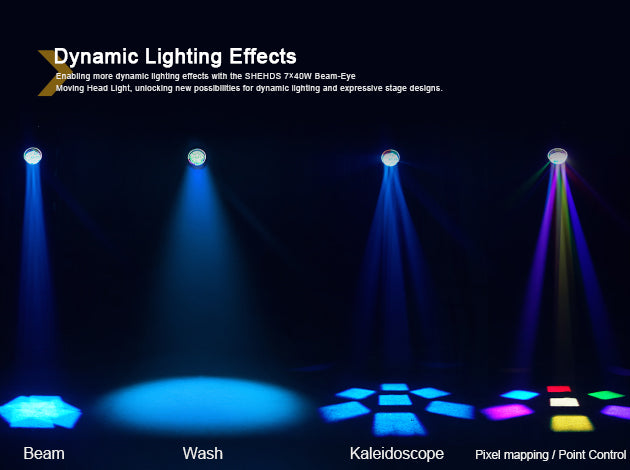Enabling more dynamic lighting effects with the SHEHDS 7×40W Beam-Eye Moving Head, making stage lighting design more creative and expressive.