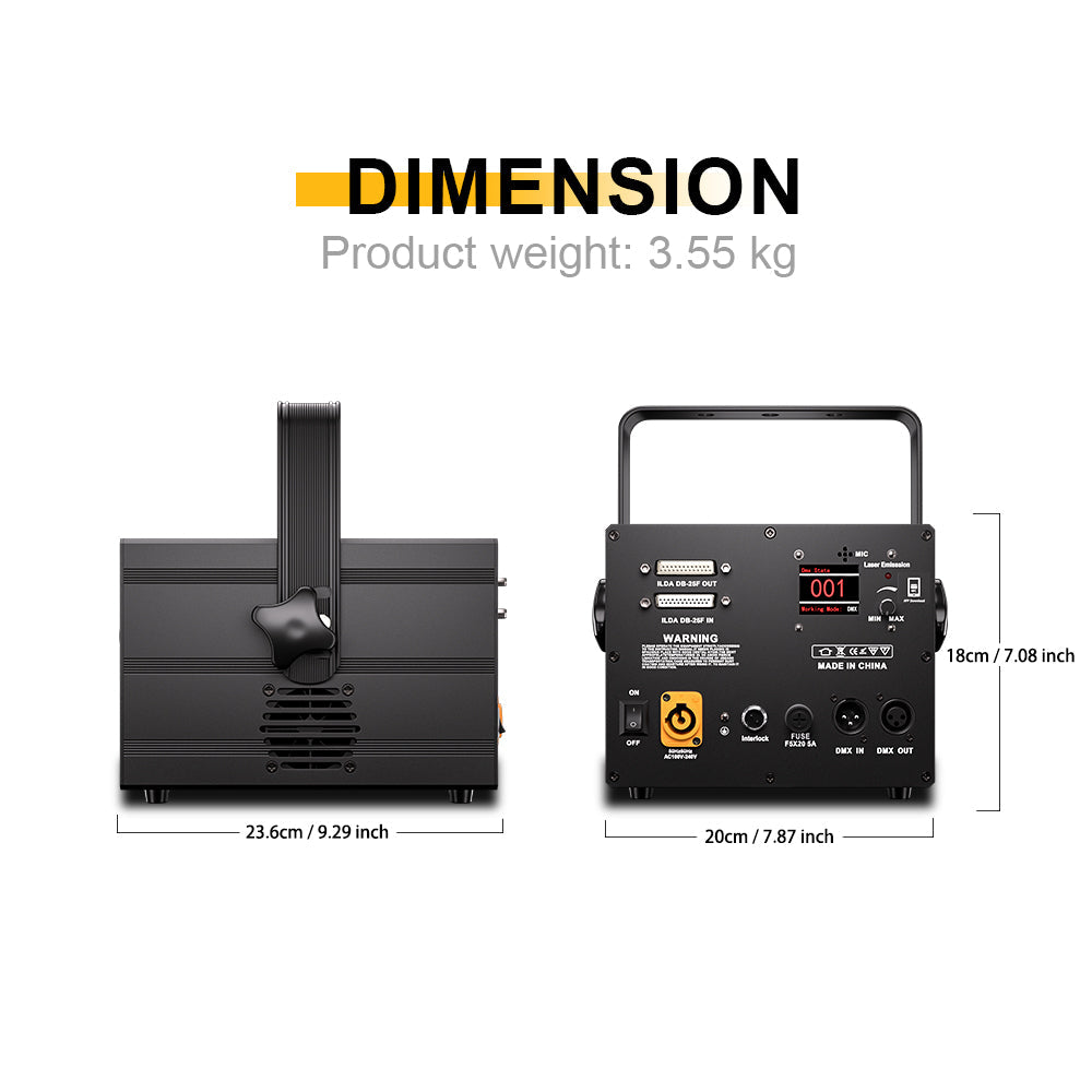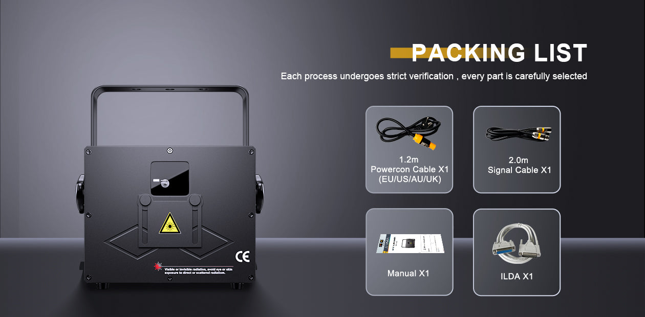 3W full-color laser is a low-power professional stage laser equipment that can be customized and edited for laser projection patterns through the 25 pin ILDA professional laser programming software Beyond Quick Show!