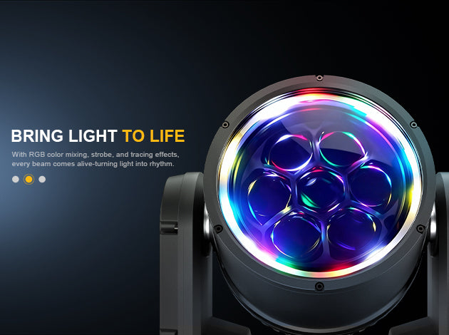 With RGB color mixing, strobe, and tracing effects, every beam comes alive-turning light into rhythm.