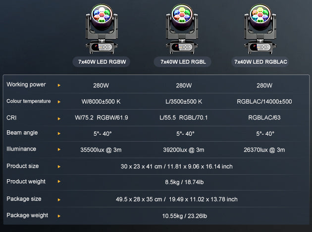 RGBW, RGBL, and RGBLAC versions deliver versatile color expression, from natural warmth to dynamic stage energy.